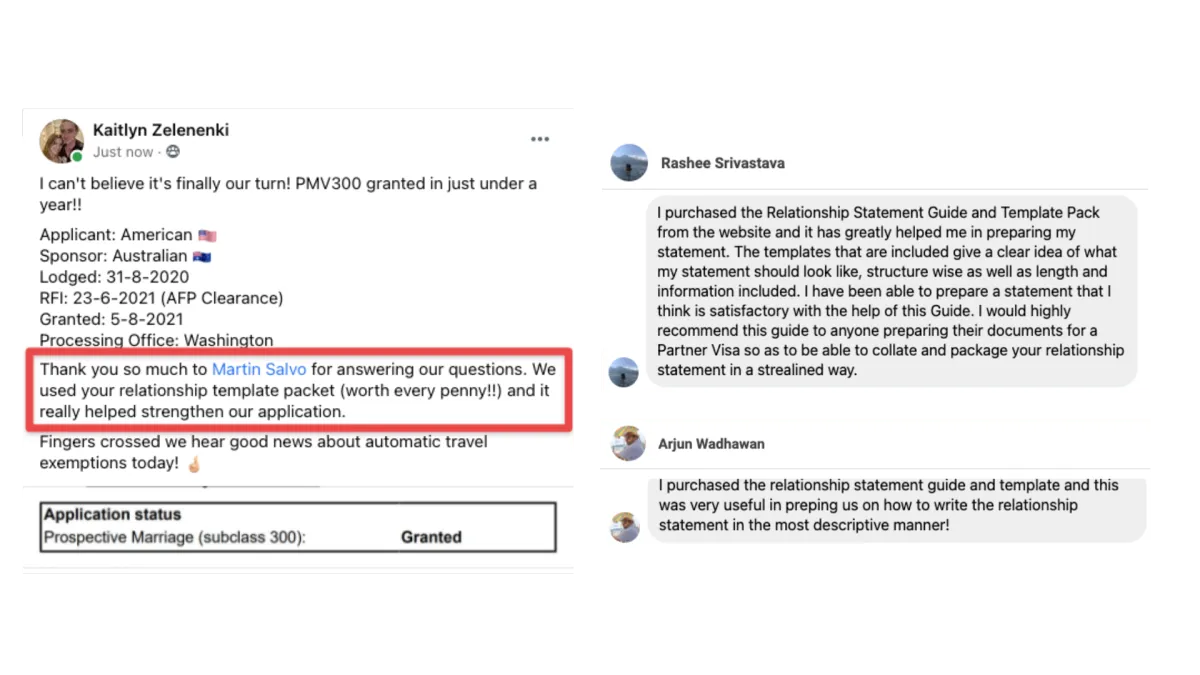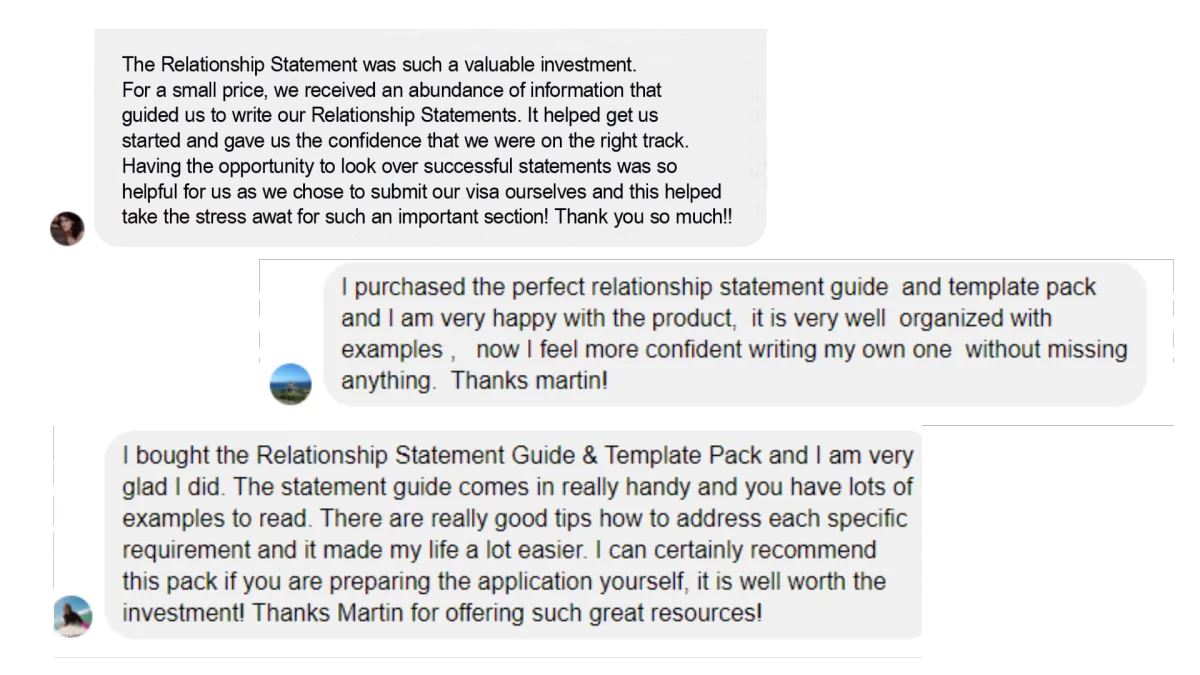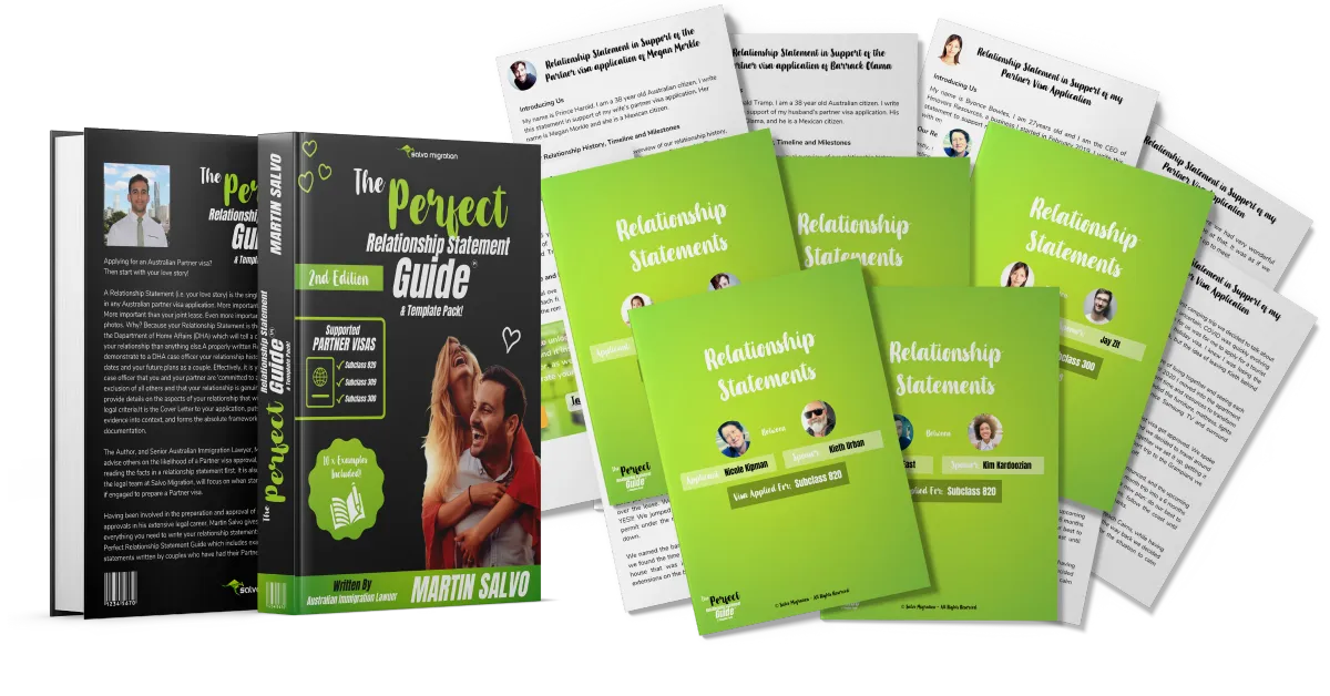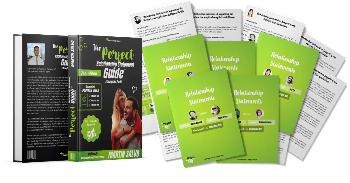 The Perfect Relationship Statement Guide & Template Pack™ is suitable for any couple researching, looking into, or preparing their Australian Subclass 820, Subclass 309 or Subclass 300 Prospective Marriage visa.