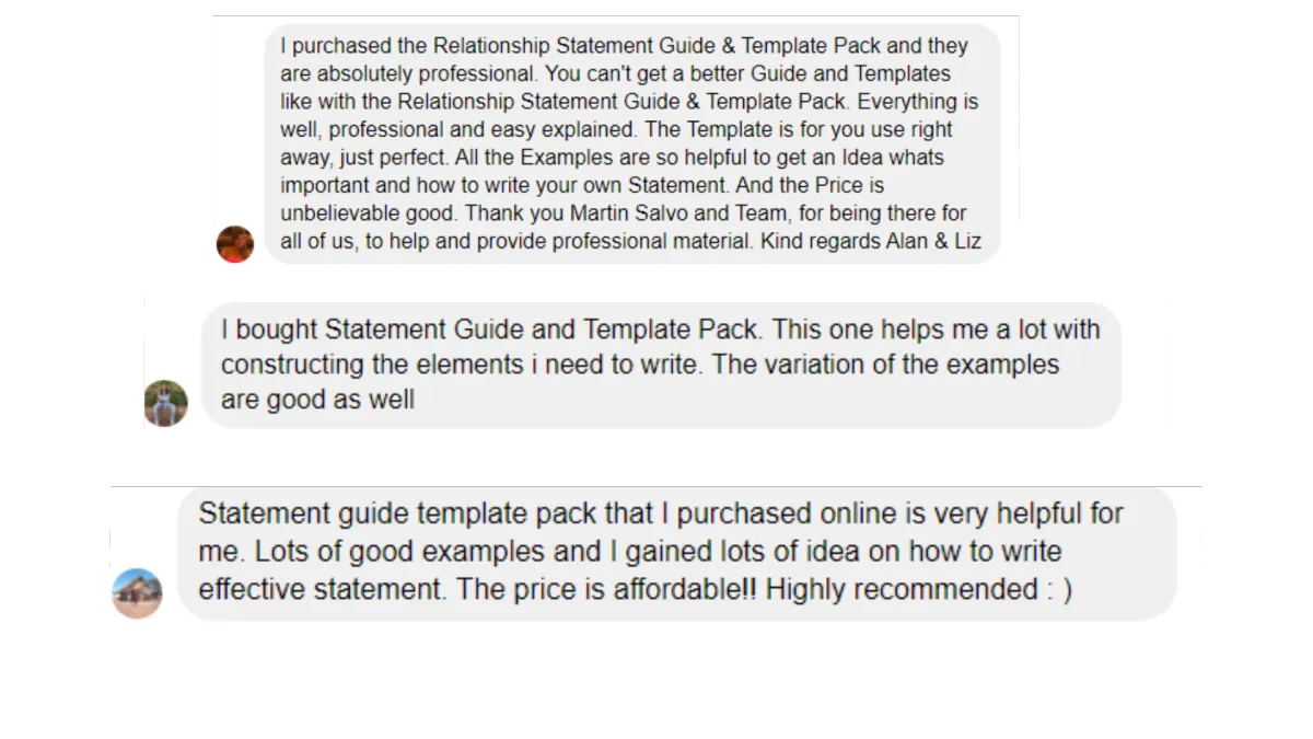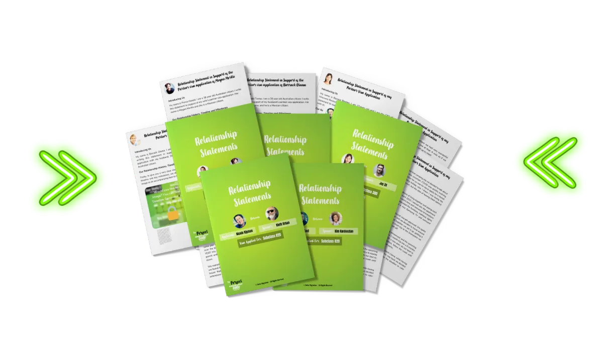 Follow In The Footsteps Of Those That Have Been Successful By Utilizing The 10 x Example Relationship Statements Modelled Off 5 x Approved Partner Visas Included In The Guide (Pages 24-54). These examples cover the Subclass 820, 309 and Prospective Marriage Visa.