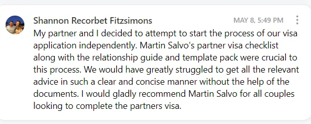 In fact, at my law firm, Salvo Migration, we have a Booklet dedicated to showcasing our Partner visa approvals secured over the last 6+ years which you can view by clicking below...