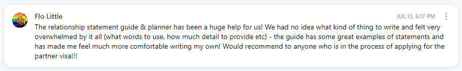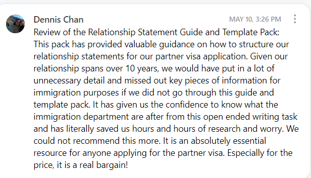 Then, recently, I decided to make this resource available to the general public for purchase as I knew it would be helpful to anyone looking to prepare their Australian partner visa.