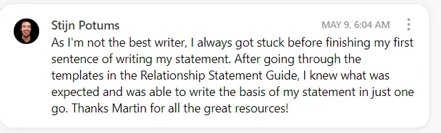 ⛔ They write too much about things that do not relate back to the visa requirements (i.e. they write things that do not move the needle in proving their relationship).