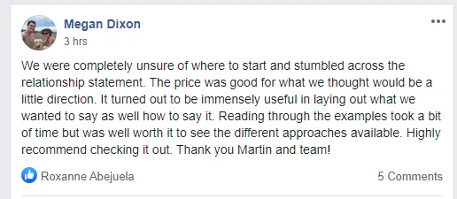 And in each and every single successful case one of the first things we ever worked on was the writing of their relationship statements.